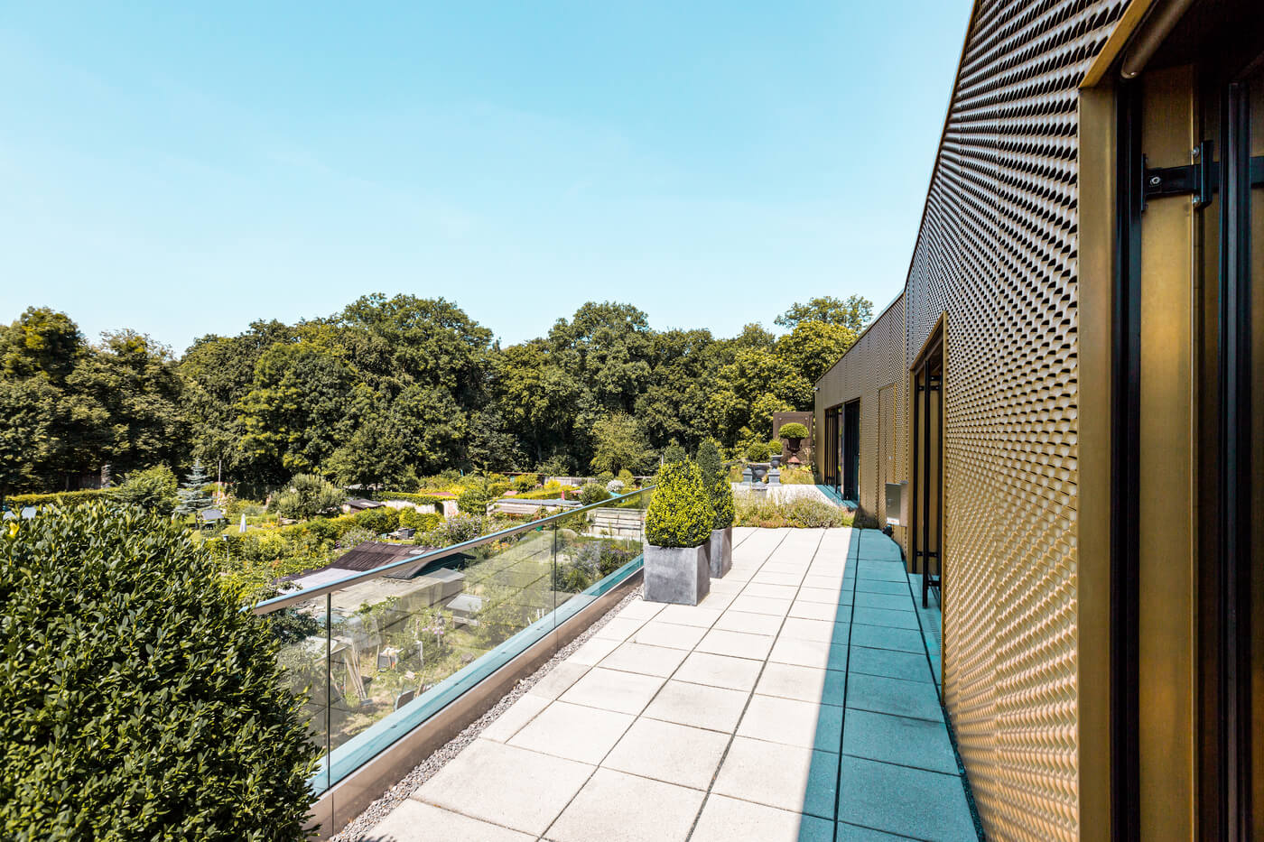 Ravensburg besticht durch eine elegante Fassade aus gestrecktem Metall in edler Goldoptik. Das Design verbindet zeitlose Wertigkeit mit modernem Materialeinsatz und sorgt für einen markanten, hochwertigen Auftritt. Ideal für Projekte, die Luxus und Stil mit technischer Präzision vereinen möchten.